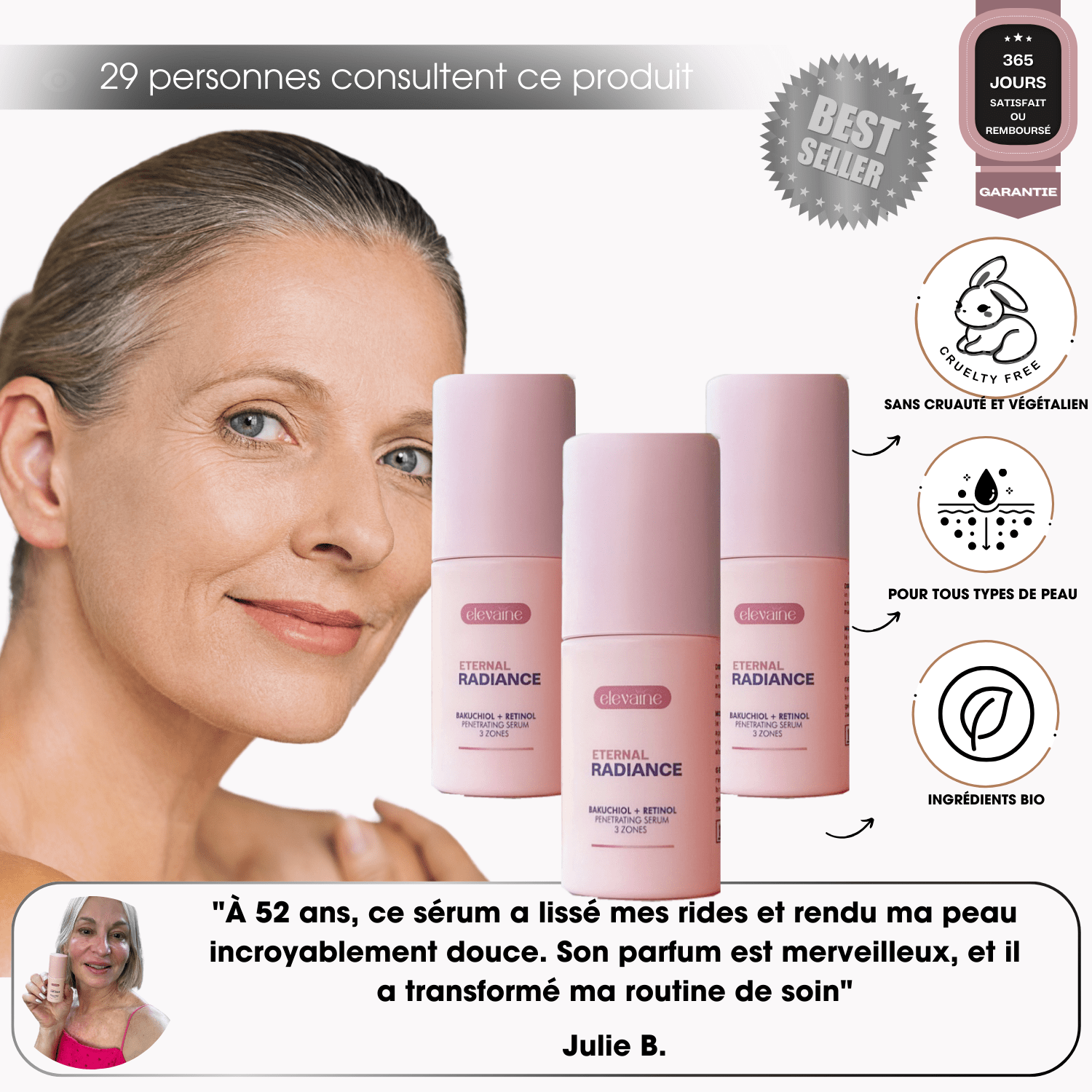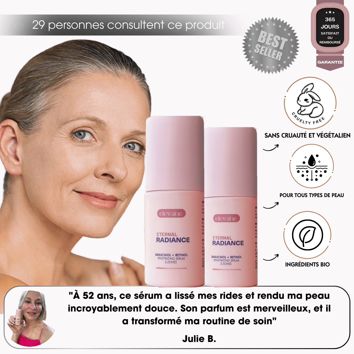 J'étais sceptique... J'en ai acheté un et j'ai été agréablement surprise. Ça vaut le coup. Je dépense pas mal en soins du visage chaque mois, mais depuis que j'utilise ce sérum, mon esthéticienne a réellement remarqué une différence dans la texture de ma peau. Merci Elevaine!